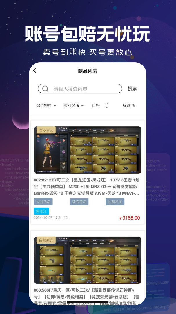 一款具备大量丰富优质网络游戏账号安全交易买卖服务应用软件