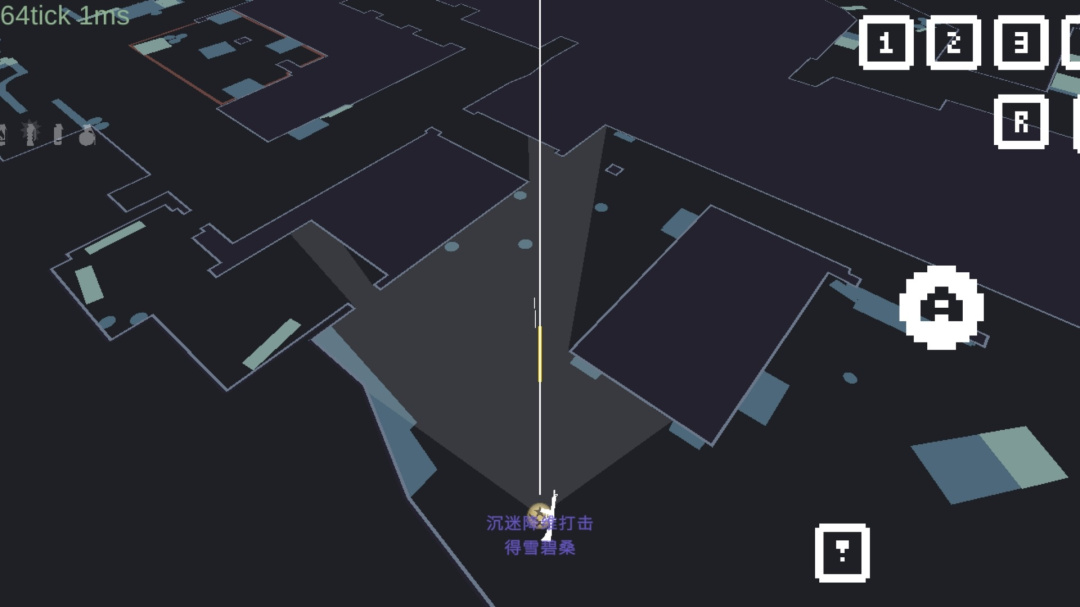 2、降维打击中所显示的角色射击轨迹,每个角色都有100 HP点,其中很多设置与CSGO相同