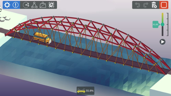 这款游戏提供了让您自由的发挥创作和设计桥梁的结构,主要目的就是让卡车通过桥梁,后期更要使轮船、热气球、飞机等通过。