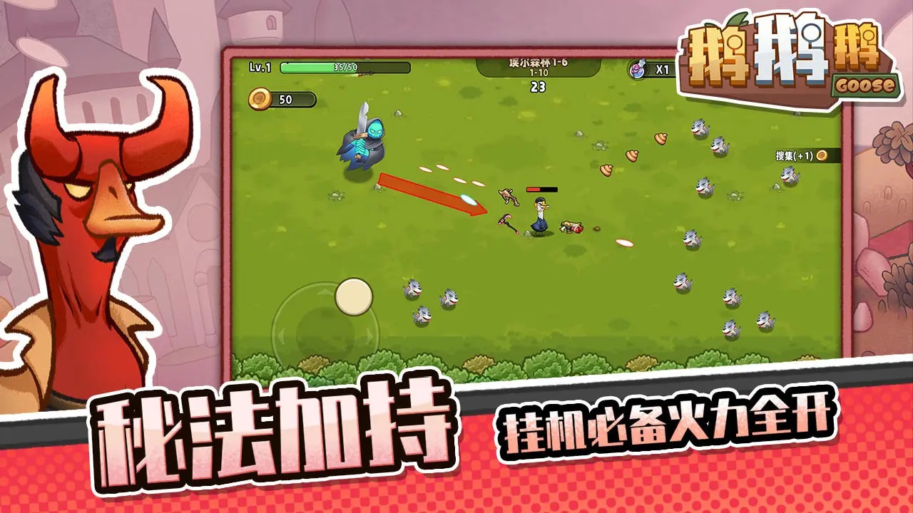 鹅鹅鹅是一款rougelike射击游戏,玩家将操控角色使用6种武器射击敌人,通过不断击退敌人,获得胜利。游戏提供了丰富的角色选择,每个角色都有独特的技能和属性。同时,还有多种武器道具供玩家选择,从近战到远程,从普通到特殊,让玩家能够根据自身喜好和战斗需求进行搭配。通过不断挑战和适应各种关卡,玩家将逐渐提升自己的射击技巧和生存能力。