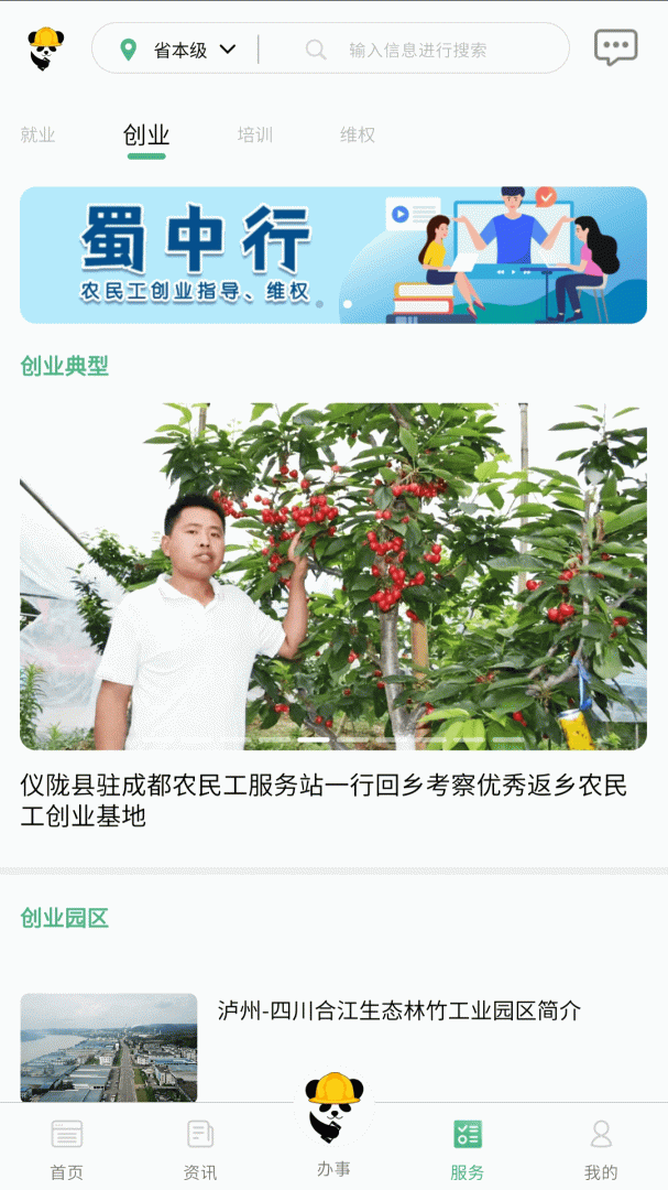使用方法简单,在这里可以了解四川本地资讯内容,可以轻松掌握返乡创业项目,用户可以输入信息进行搜索,专为四川农民工打造的创业就业平台,还有多种办事服务,需要伙伴,即可使用