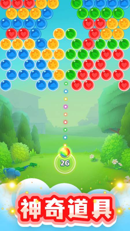 开心泡泡龙中设计了多种多样的奇趣道具供玩家使用,如炸弹泡泡、彩虹泡泡等。这些道具具有特殊的功能,可以帮助玩家更快地消除泡泡,增加游戏的爽快感。同时,游戏还加入了神奇道具,让玩家在关键时刻毫不费力地消除全屏泡泡,提升游戏体验。