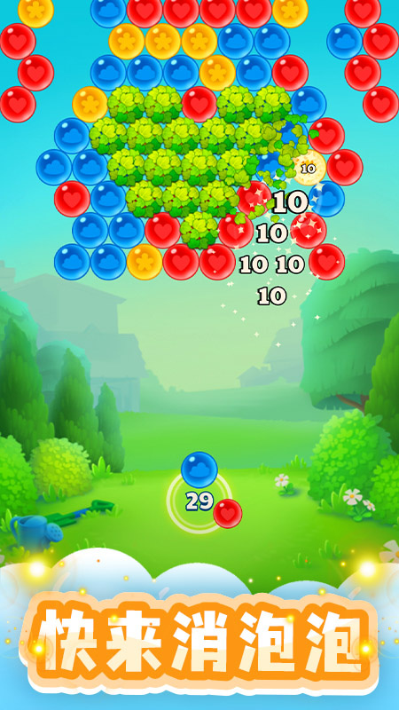 游戏画面清新可爱,泡泡色彩丰富多样,加上可爱的角色设计和背景音乐,让玩家感觉仿佛置身于一个童话般的世界,散发着欢乐的气息。
