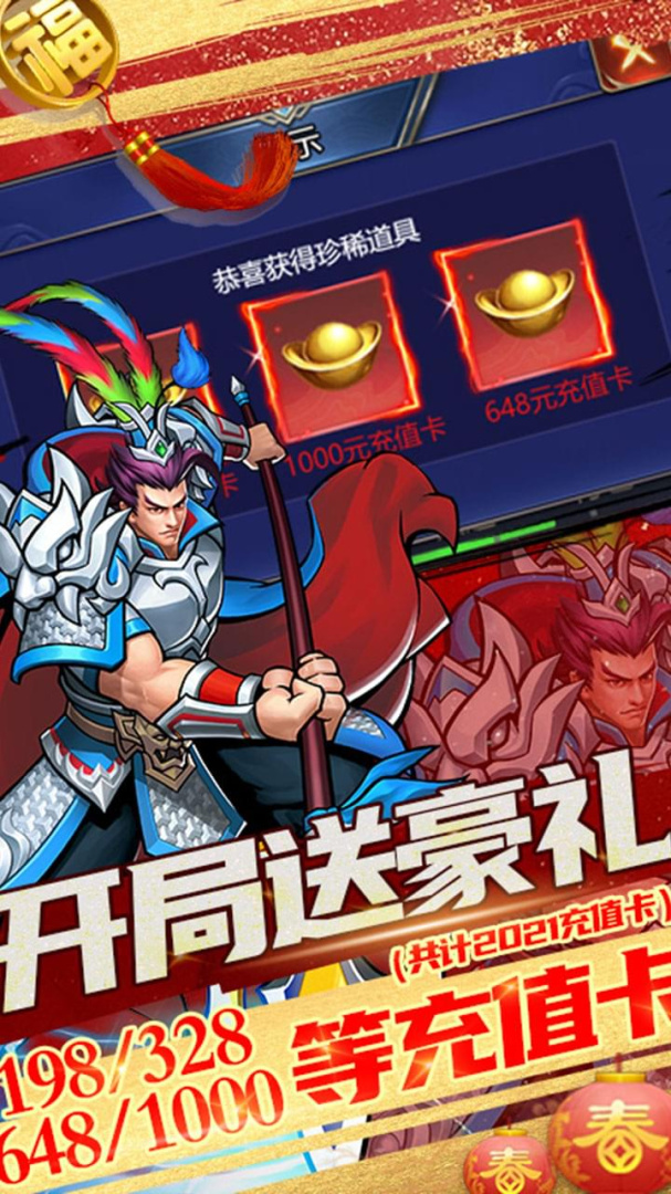 免费解锁武将角色;