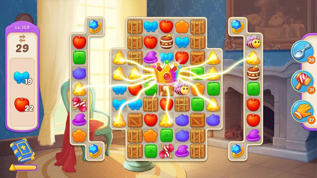 梦幻游戏场景画面,简单灵活的操作玩法,在梦幻城堡中,玩家将扮演主角,经营城堡,自由装扮,趣味三消,寻找宝藏
