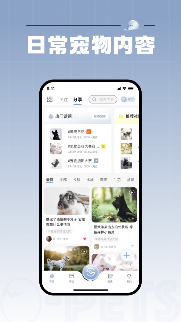 集宠区的玩家社区是以宠物日常做为分享,打造每位用户的个性化宠物社交圈,平台定期举办活动,组织宠物爱好者线上互动。