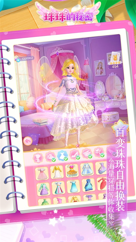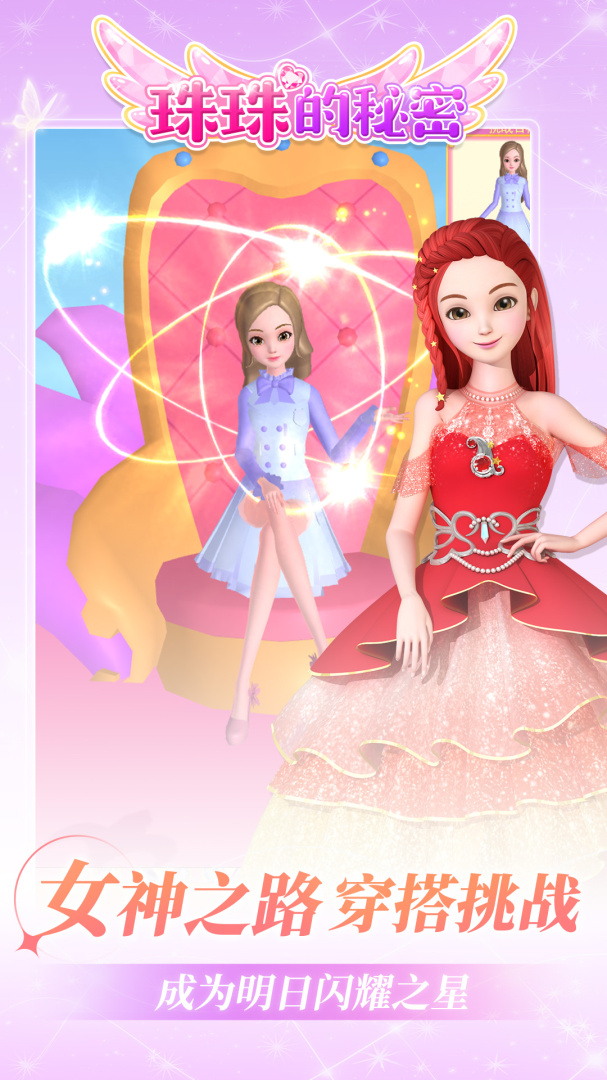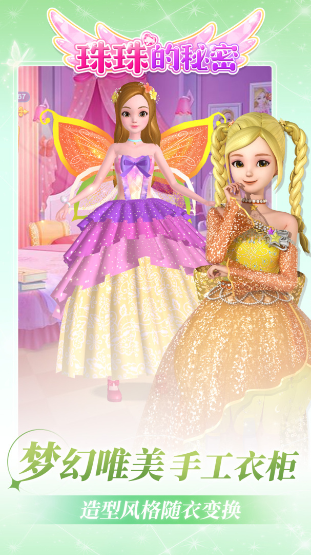 3、D角色 自由选择魔力魔力魔力,珠珠的秘密版~珠珠、莉莉、艾琳、珍妮、莎莎等多位高人气角色上线。精致细腻的3D形象、梦幻唯美的长裙、鲜艳精美的场景布局,还有超多趣味玩法