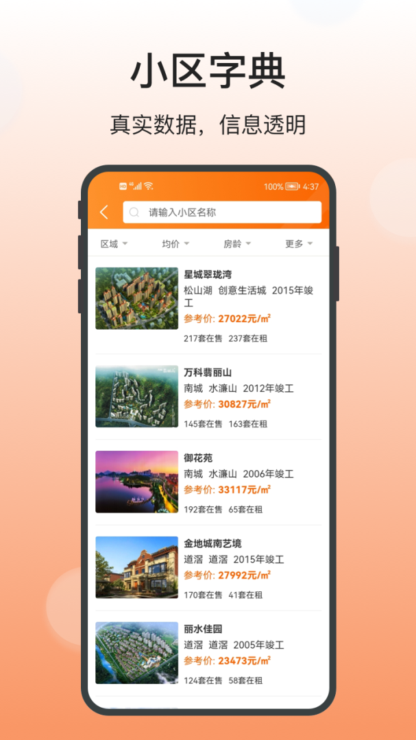 1、一款集租房、新房、二手房,买房卖房查房价找房的专业房产app