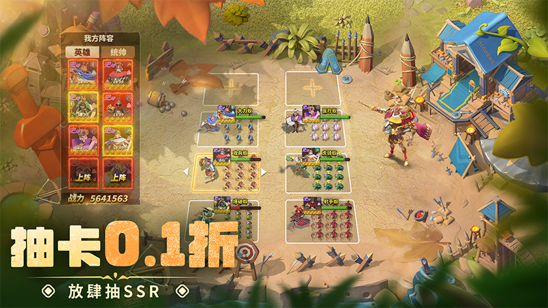 因为这是前期攻略,资源还是挺紧张的,就算是输我们也不能浪费每一次掠夺机会,选一个资源仓库暴露在外的,用远程小兵或英雄打完就跑,一点损失都没有