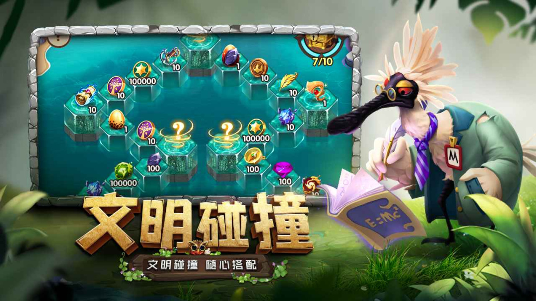 3、游戏拥有独立架空的世界观,独特的英雄造型以及有趣的对话、剧情、技能特效。这里是极具趣味性世界,快来加入这个世界和英雄们一起打造引领世界的文明吧