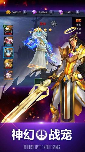 2、多种组合玩法,天神阵容、圣物装备任你搭配,木火水光暗五大元素生生相克