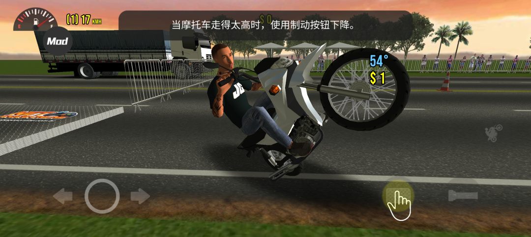 游戏操作简单直观,玩家只需倾斜手机即可控制摩托车的平衡,容易上手但难以精通,适合各年龄段的玩家。