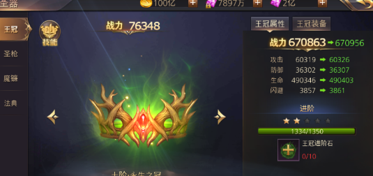 3. 圣盾、圣器、神兵、羽翼、坐骑等,都可以通过进阶石来升级且根据品质提供不俗的属性以及战力加成。