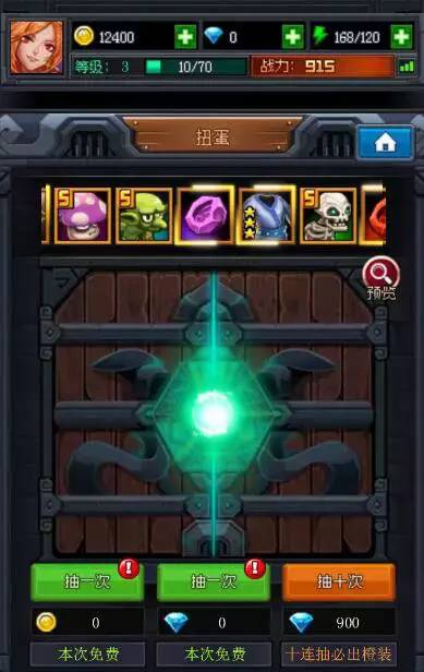 金币的免费抽取冷却短,钻石的免费抽取冷却长。千万时刻注意扭蛋图标上是否有感叹号。有的话,记得免费抽奖哦~