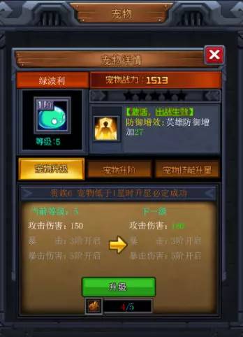 然后点开【宠物】一顿升级将存下的宠物饲料挥霍一空,也加了不少战力!