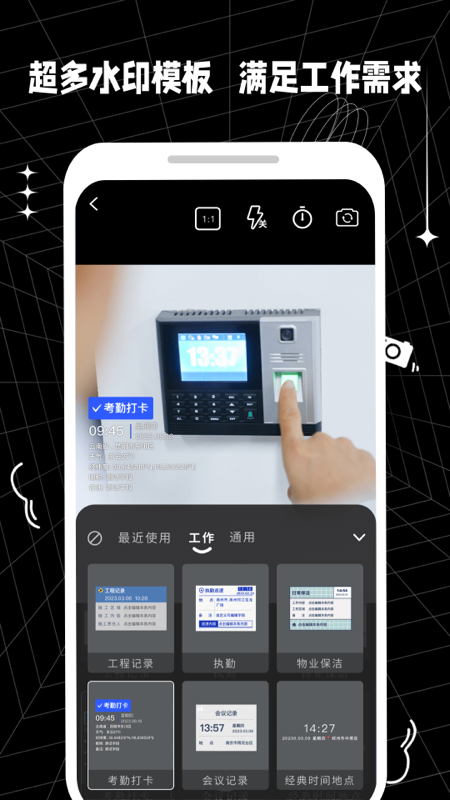 3、适用场景广泛适于项目巡检、勘察取证、防控消杀、执勤执法、考勤打卡、外勤拍照、工程管理、微商电商等多场景工作拍照、打卡、记录所需,更有防疫消毒水印,记录健康。另持续推出创意水印,支持乐享生活的人们旅游打卡、探店打卡、健身打卡