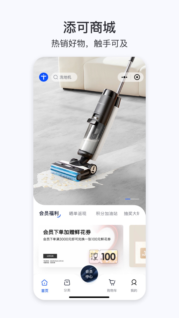 【强大吸力】Tineco提供的吸尘器拥有强大的吸力,可以彻底清洁地板、地毯和其他家居表面,保持环境清洁。