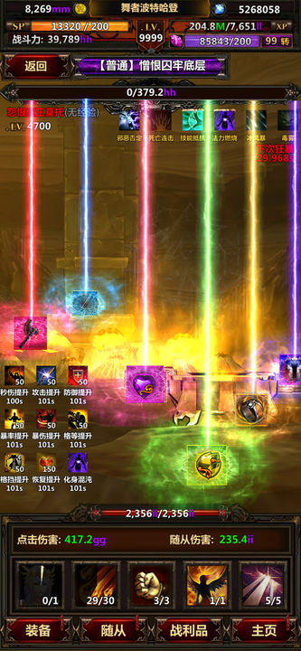 7、推图:探索属性影响推图速度(不影响挂机收益),有些朋友需要打好多个小怪才能打到boos,就是探索太低,这个数值一般来自于装备进阶的附魔属性,可以刷点,根据自己需要调,需要注意的是如果你想在探索的时候开宝箱,那就不能把探索堆太高,每张图的第一个怪一定是普通怪。
