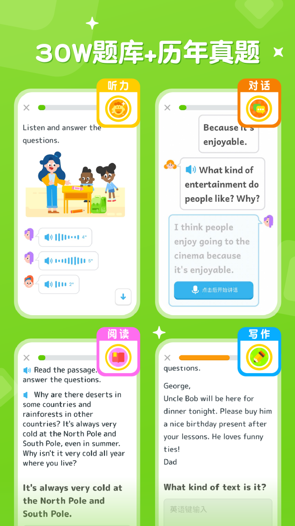 提供丰富多样的课程内容,涵盖听说读写各个方面,满足不同用户的学习需求。