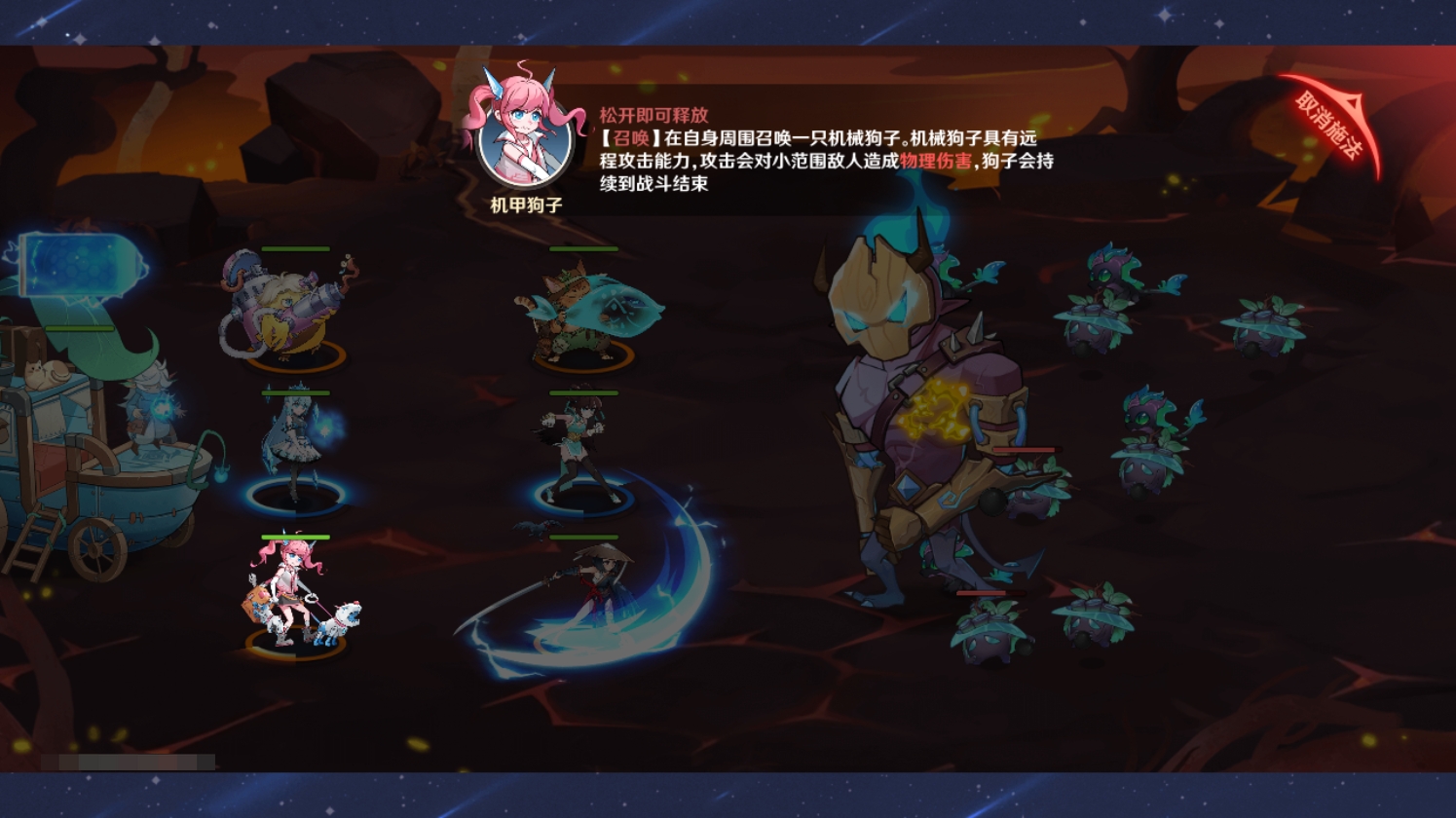 在常规的战斗中,击败敌方所有怪物且己方【核心】没有被摧毁的情况下即为胜利,并且【核心】在战斗中也能为队伍中的英雄们提供很大的帮助,下面是所有的【核心】以及对应的效果(布阵时可选择其中一个【核心】上阵,只有上阵的【核心】才能生效)