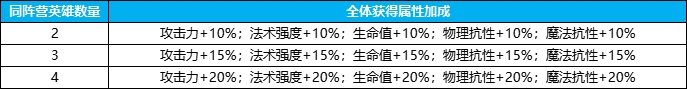 注意!同阵营的属性加成效果属于锦上添花,不建议强行凑加成,阵容搭配的合理性更加重要。