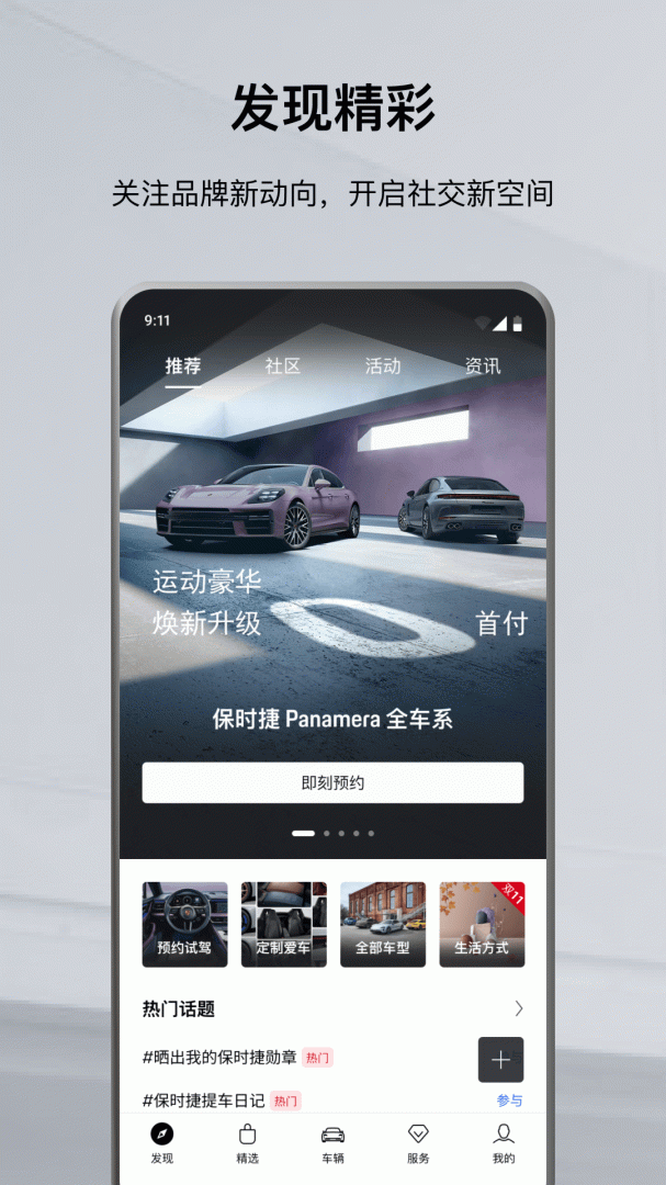 通过APP可以轻松预约保养服务和获取最新车型信息,使我对保时捷的热情更加浓厚,并且感受到品牌对于客户的关怀与专业。