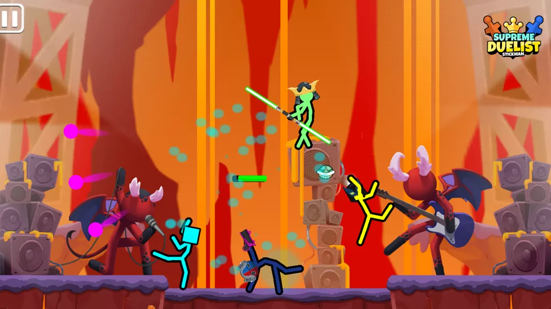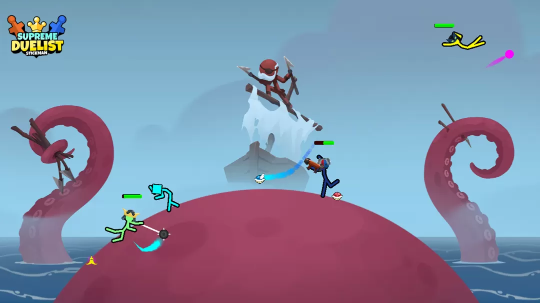 《Supreme Duelist Stickman》提供了多种游戏模式,包括单人模式和多人对战,玩家可以选择与AI对战或邀请朋友进行竞技,增加了游戏的可玩性。