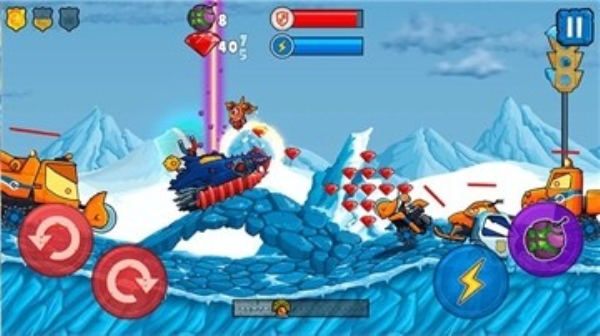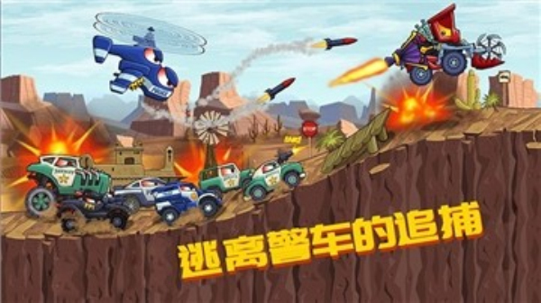 1、热血卡通风格的画风,驾驶汽车横冲直撞。