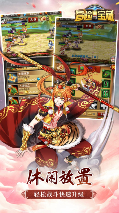 《冒险与宝藏BT果盘版》是一款西游题材的RPG手游。游戏采用放置类玩法,玩法轻松。并加入大量西游人物,对人物外形进行大胆创新。玩家可以收集自己喜欢的角色开始冒险,通过战斗不断提升等级。你需要结合策略,与好友一同跨服征战,或是探索各种有趣的副本,触发精彩的剧情。快来尝试吧!