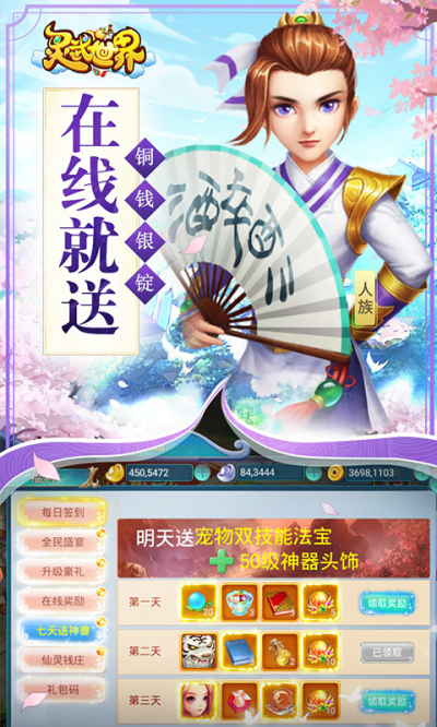 6、在线豪礼,升级奖励,每日签到,奖励10倍增加,愿君笑纳