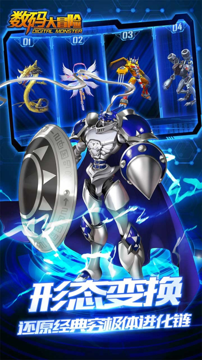 Q萌版日系美术风格深得大众欢迎。但其中最为特别的,甚至可以说是独特的还是游戏中难得的金属质感。数码兽进化是由Q萌向机械感的进化, 《数码兽大冒险》中数码兽的战斗形态就含有独特的金属质感,这为游戏的战斗效果增添了超炫视觉享受。