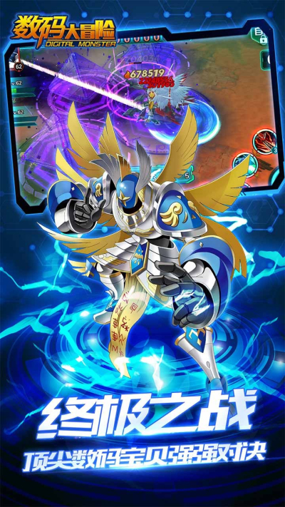 融合了宠物收集、卡牌策略为一体的手机游戏,在游戏场景上主要采用的是卡通元素,以蓝色为背景,将大量的系统板块融入进去,给你带来良好的视觉体验,快来带着你的数码宝贝来一起探险吧!
