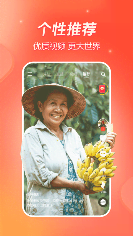 这里有各种圏子达人-冲浪者、旅行家、建筑师..每个人在这里展示才艺、创意;发现你喜欢的人,发现喜你的人,让火山根据算法定制你专属的视频内容,新鲜永远刷不停