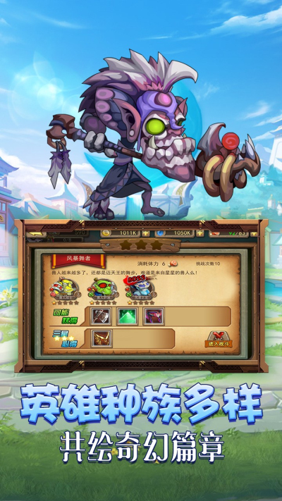 5.首充福利:砖石*10000,技能点*2000,3星英雄斧王,天赋点1880