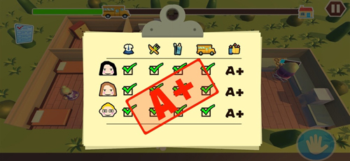 3、随时关注校车的行驶状况,游戏非常紧张,在校车到家前,必须让熊孩子都准备好,将三个熊孩子按时送去上学,可以获得A+的成绩单,成为合格的妈妈。
