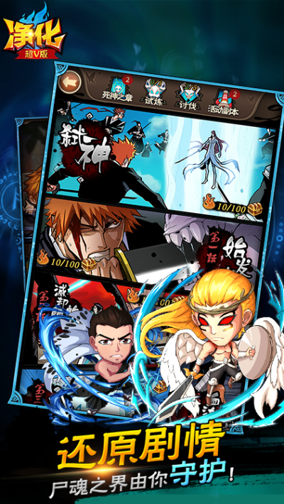 从经典的尸魂界大战,到最新的千年血战篇,《净化》用漫画章节方式展开剧情,随时同步漫画最新剧情,给你原汁原味的二次元体验,在《死神》动画停播期间不再空虚寂寞。