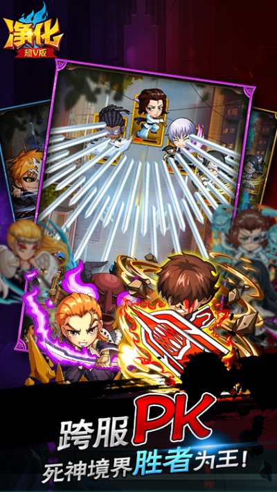 还原度超高,角色超全的死神手游《净化BT-超V版BT版狂玩版》正式到来!黑崎一护、朽木露琪亚、日番谷冬狮郎等超人气角色悉数登场,护庭十三队、十刃、破面、星十字骑士团全员任你养成!独享超值1:500充值比例,创角即可领取超人气死神主角“黑崎一护”及海量钻石!延续死神经典,守护尸魂荣耀,超爽BT体验,再燃Bleach热血!