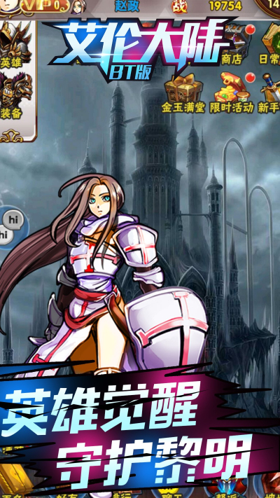 西方神话风格卡牌手游《艾伦大陆BT版》魔幻降临。正义与邪恶交织在一起,你该做出怎样的决定,寻找属于自己的英雄伙伴,在这风云莫测的艾伦大陆中留下自己的传说。多重关卡,重重挑战;魔幻大军,神宠相伴;羁绊组合,强力合击;巡游探索,冒险挑战;跨服争斗,名震天下。点燃魔幻热血,体验神话传说!