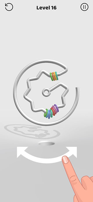 1、玩家需要旋转金属形状,并让这些彩色环顺利的进入到孔中;