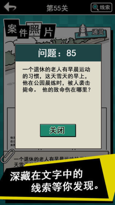 4.每个案件的解决时间都很有限,因此在这个游戏中,您应该认真思考,并在最短的时间内找出真正的凶手。