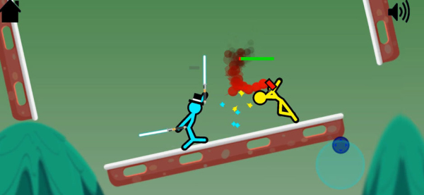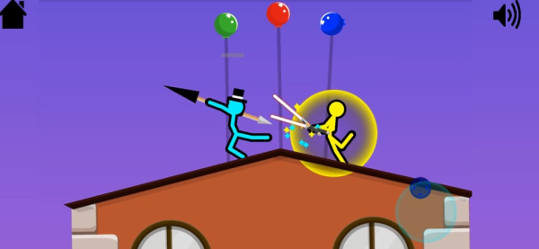 游戏操作简单,只用一个虚拟摇杆就可以完成。进入游戏后,可以选择一个对手进行对战,可以是电脑,也可以是你的朋友,选择武器与装备后进入战斗。使用虚拟摇杆让你的火柴人执行动作,让手中或者脚上的武器能对对手造成伤害,最终击败对手!