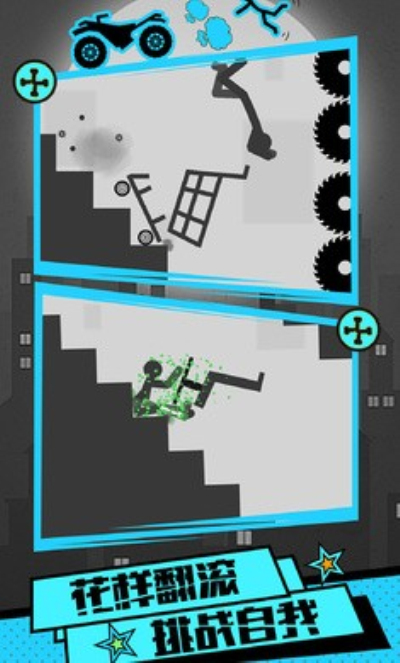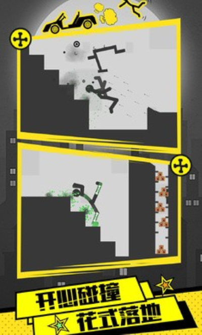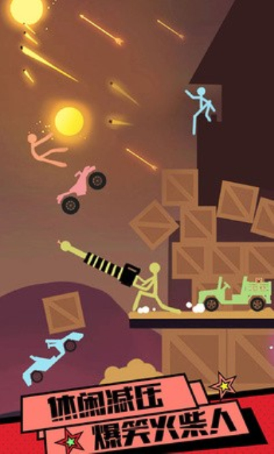 火柴人刺激求生是火柴人系列作品当中的又一神作,游戏里玩家当以操作火柴人各种作死,开着摩托撞墙、开着装满炸药的吉普上天,游戏玩法就是通过不同的方式让火柴人死的更惨分数越高。