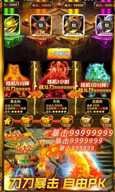 《斗法天地btBT版狂玩版》激情战斗、跨服同屏竞技的BT挂机游戏!每天轮回赚元宝,战斗赚装备,近乎无限元宝、装备全靠打的良心之作!百人同屏PK抢BOSS,10连杀全服广播的ARPG式即时战斗,更有公会多人龙城决战,跨服交易等全功能玩法,兄弟聚首,龙城争霸,带你重回激情热血的传奇时代!