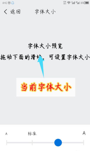 4、调整过滑块后,在上面的字体大小预览区,能看到当前字体的大小。
