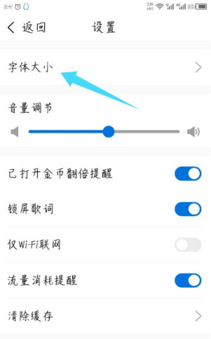 2、在设置里面,能看到上面的字体大小,点击打开。