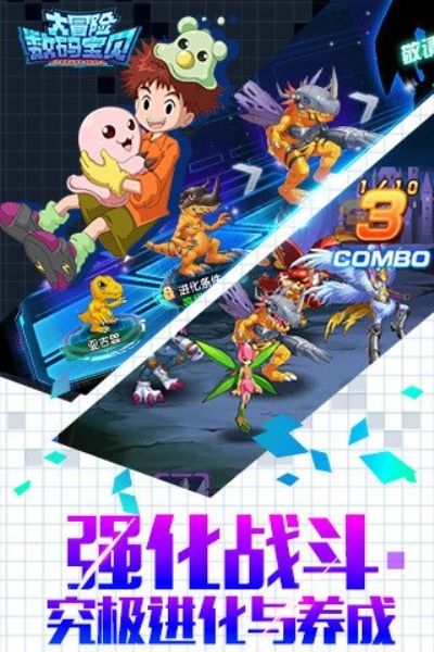 升级吧,亚古兽!究极进化,战斗暴龙兽!在《数码宝贝大冒险》中,你将拥有专属于你的数码宝贝养成计划。历练、进化、友谊、羁绊……在正常养成大作战中,你可以凭借智慧,建立你的掌中数码宝贝帝国!
