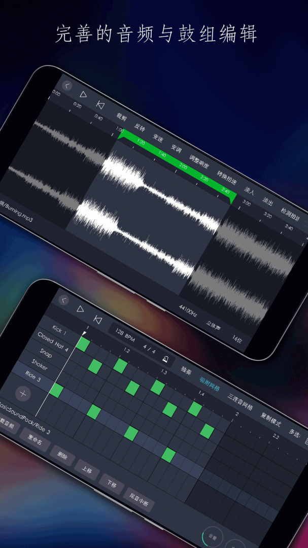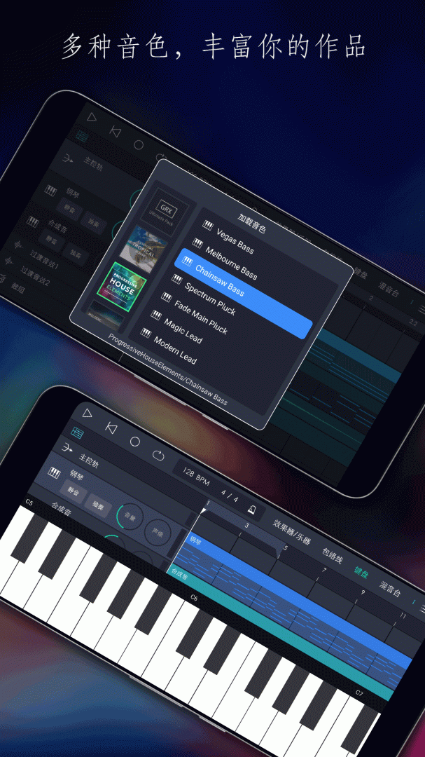 《玩酷电音》是手机平台的一款功能强大的电音制作与实时创作软件,它可以帮助您快速地记录创作灵感,并通过各种实用高效的编辑功能来逐渐完善您的创作。软件可创建乐器、鼓机、采样器与音频四种音轨,每种音轨拥有其强大的编辑功能,包括钢琴卷帘、调音键盘、音频剪切编辑面板等;同时您也可以导入自己手机中的音频文件或通过麦克风录音来创造出更个性化的音乐。软件同时拥有在线更新的音色库,提供了大量的音色素材可供下载。