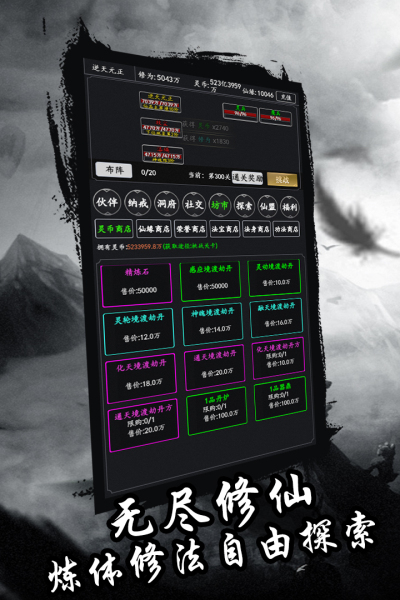 转世轮回,睁眼已入修真大陆。修真世界,可召集伙伴,修真炼气,渡劫飞升,共同斩妖除魔;可开辟洞府,炼丹炼器,掌握奇门遁甲;可加入门派,学习功法,修炼秘籍,习得绝世功法;可探索上古遗迹,寻找天才地宝,神兵利器。修炼之路,前路茫茫,家族纷争,门派林立,如何炼金丹,修元婴,踏破红尘,斩妖除魔,屹立天地之间,成为世界主宰。前尘之路,只等你来开启!