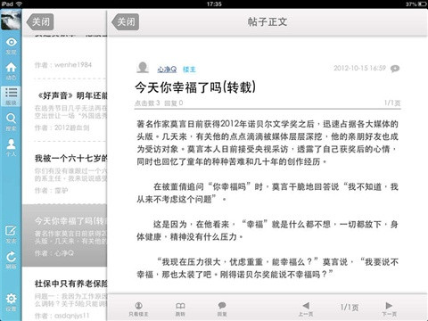 轻发现:“天涯轻”支持LBS应用,可根据用户的地理位置、社区行为、好友关系等,向用户推荐内容、话题、好友等社区服务。