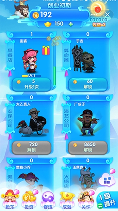 2、修炼和关怀换成长,神仙也能来帮你打工,增加游戏更多收益